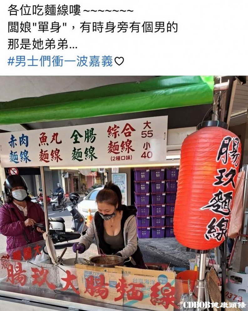 臉書社團「蚵仔麵線神教」日前有網友分享嘉義好吃的麵線攤,不料超正的老闆娘彎腰盛麵線的「犯規照」曝光後卻馬上歪樓,網友紛紛直呼要到嘉義探訪親朋好友、順便吃好吃的大腸麵線。
